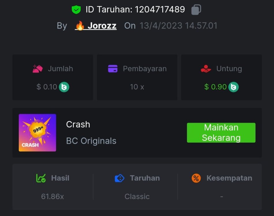 4. EASY 1. Classic Dice x5 https://bc.game/#/sd/117HABJTZXG93N 2. Baccarat Tie x9 https://bc.game/#/sd/117HAE6HJX1S7N 3. Crash x10 https://bc.game/#/sd/117HAOKZZ28AVN 4. Egyptian Adventure x10 https://bc.game/#/sd/117HAV0LKXT4PF 5. Oriental Beauties x20 https://bc.game/#/sd/117HB4734PPMHF 6. Cave Of Plunder x7.5 https://bc.game/#/sd/117HB9GUQAJEOJ 7. Sport Ticket ID : 2258207423246504383 8. Hello Easter x20 https://bc.game/#/sd/117HCEBI88OTG3 9. Lucky Easter x30 https://bc.game/#/sd/117HDI6Q91045V 10. Enable 2FA, Verif Email & Phone MEDIUM 1. Roullet 0 https://bc.game/#/sd/117HEOU1WKNLZN 2. Plinko x76 https://bc.game/#/sd/117HEUUG5J7GNN 3. Keno Single x50 https://bc.game/#/sd/117HF6BSZ4T0YB 4. Ring Of Fortune x99 https://bc.game/#/sd/117HJUOPXQPYQB 5. Sports Ticket ID : 2258248123044466967 HARD 1. Whell 49.5x https://bc.game/#/sd/117I6RI9AWRXN7